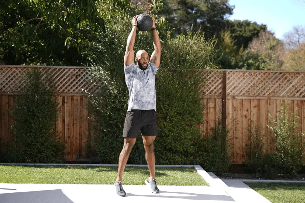 - Slam overhead : tendre le ballon au-dessus de la tête et le jeter violemment au sol, en contractant fort les abdominaux et en profitant pour engager l’ensemble du corps.